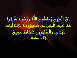 إِنَّ الَّذِينَ يُحَادُّونَ اللَّهَ وَرَسُولَهُ كُبِتُوا كَمَا كُبِتَ الَّذِينَ مِنْ قَبْلِهِمْ ۚ وَقَدْ أَنْزَلْنَا آيَاتٍ بَيِّنَاتٍ ۚ وَلِلْكَافِرِينَ عَذَابٌ مُهِينٌ ﴿٥﴾ يَوْمَ يَبْعَثُهُمُ اللَّهُ جَمِيعًا فَيُنَبِّئُهُمْ بِمَا عَمِلُوا أَحْصَاهُ اللَّهُ وَنَسُوهُ وَاللَّهُ عَلَىٰ كُلِّ شَيْءٍ شَهِيدٌ ﴿٦﴾ أَلَمْ تَرَ أَنَّ اللَّهَ يَعْلَمُ مَا فِي السَّمَاوَاتِ وَمَا فِي الْأَرْضِ مَا يَكُونُ مِنْ نَجْوَىٰ ثَلَاثَةٍ إِلَّا هُوَ رَابِعُهُمْ وَلَا خَمْسَةٍ إِلَّا هُوَ سَادِسُهُمْ وَلَا أَدْنَىٰ مِنْ ذَٰلِكَ وَلَا أَكْثَرَ إِلَّا هُوَ مَعَهُمْ أَيْنَ مَا كَانُوا ثُمَّ يُنَبِّئُهُمْ بِمَا عَمِلُوا يَوْمَ الْقِيَامَةِ إِنَّ اللَّهَ بِكُلِّ شَيْءٍ عَلِيمٌ ﴿٧﴾ أَلَمْ تَرَ إِلَى الَّذِينَ نُهُوا عَنِ النَّجْوَىٰ ثُمَّ يَعُودُونَ لِمَا نُهُوا عَنْهُ وَيَتَنَاجَوْنَ بِالْإِثْمِ وَالْعُدْوَانِ وَمَعْصِيَتِ الرَّسُولِ وَإِذَا جَاءُوكَ حَيَّوْكَ بِمَا لَمْ يُحَيِّكَ بِهِ اللَّهُ وَيَقُولُونَ فِي أَنْفُسِهِمْ لَوْلَا يُعَذِّبُنَا اللَّهُ بِمَا نَقُولُ حَسْبُهُمْ جَهَنَّمُ يَصْلَوْنَهَا فَبِئْسَ الْمَصِيرُ ﴿٨﴾ يَا أَيُّهَا الَّذِينَ آمَنُوا إِذَا تَنَاجَيْتُمْ فَلَا تَتَنَاجَوْا بِالْإِثْمِ وَالْعُدْوَانِ وَمَعْصِيَتِ الرَّسُولِ وَتَنَاجَوْا بِالْبِرِّ وَالتَّقْوَىٰ وَاتَّقُوا اللَّهَ الَّذِي إِلَيْهِ تُحْشَرُونَ ﴿٩﴾ إِنَّمَا النَّجْوَىٰ مِنَ الشَّيْطَانِ لِيَحْزُنَ الَّذِينَ آمَنُوا وَلَيْسَ بِضَارِّهِمْ شَيْئًا إِلَّا بِإِذْنِ اللَّهِ وَعَلَى اللَّهِ فَلْيَتَوَكَّلِ الْمُؤْمِنُونَ ﴿١٠﴾
