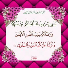 يَا بَنِي إِسْرَائِيلَ قَدْ أَنْجَيْنَاكُمْ مِنْ عَدُوِّكُمْ وَوَاعَدْنَاكُمْ جَانِبَ الطُّورِ الْأَيْمَنَ وَنَزَّلْنَا عَلَيْكُمُ الْمَنَّ وَالسَّلْوَىٰ ﴿٨٠﴾ كُلُوا مِنْ طَيِّبَاتِ مَا رَزَقْنَاكُمْ وَلَا تَطْغَوْا فِيهِ فَيَحِلَّ عَلَيْكُمْ غَضَبِي ۖ وَمَنْ يَحْلِلْ عَلَيْهِ غَضَبِي فَقَدْ هَوَىٰ ﴿٨١﴾ وَإِنِّي لَغَفَّارٌ لِمَنْ تَابَ وَآمَنَ وَعَمِلَ صَالِحًا ثُمَّ اهْتَدَىٰ ﴿٨٢﴾.