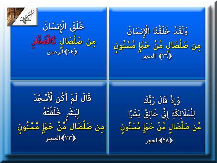 وَلَقَدۡ خَلَقۡنَا ٱلۡإِنسَـٰنَ مِن سُلَـٰلَةٍ مِّن طِينٍ (١٢) ثُمَّ جَعَلۡنَـٰهُ نُطۡفَةً فِى قَرَارٍ مَّكِينٍ (١٣) ثُمَّ خَلَقۡنَا ٱلنُّطۡفَةَ عَلَقَةً فَخَلَقۡنَا ٱلۡعَلَقَةَ مُضۡغَةً فَخَلَقۡنَا ٱلۡمُضۡغَةَ عِظَـٰمًا فَكَسَوۡنَا ٱلۡعِظَـٰمَ لَحۡمًا ثُمَّ أَنشَأۡنَـٰهُ خَلۡقًا ءَاخَرَ فَتَبَارَكَ ٱللَّهُ أَحۡسَنُ ٱلۡخَـٰلِقِينَ (١٤).