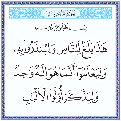 • تَنزِيلٌ مِّن رَّبِّ الْعَالَمِينَ ‎﴿٤٣﴾‏ وَلَوْ تَقَوَّلَ عَلَيْنَا بَعْضَ الْأَقَاوِيلِ ‎﴿٤٤﴾‏ لَأَخَذْنَا مِنْهُ بِالْيَمِينِ ‎﴿٤٥﴾‏ ثُمَّ لَقَطَعْنَا مِنْهُ الْوَتِينَ ‎﴿٤٦﴾‏ فَمَا مِنكُم مِّنْ أَحَدٍ عَنْهُ حَاجِزِينَ ‎﴿٤٧﴾‏ وَإِنَّهُ لَتَذْكِرَةٌ لِّلْمُتَّقِينَ ‎﴿٤٨﴾‏ وَإِنَّا لَنَعْلَمُ أَنَّ مِنكُم مُّكَذِّبِينَ ‎﴿٤٩﴾‏ وَإِنَّهُ لَحَسْرَةٌ عَلَى الْكَافِرِينَ ‎﴿٥٠﴾  الحاقة